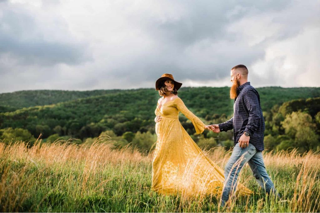Có một số lựa chọn tốt cho các tư thế đi bộ dành cho bà bầu. Người mẹ có thể dẫn dắt người bố khi họ đang nắm tay nhau và mỉm cười với nhau. Thỉnh thoảng yêu cầu cô ấy đặt một tay lên bụng.