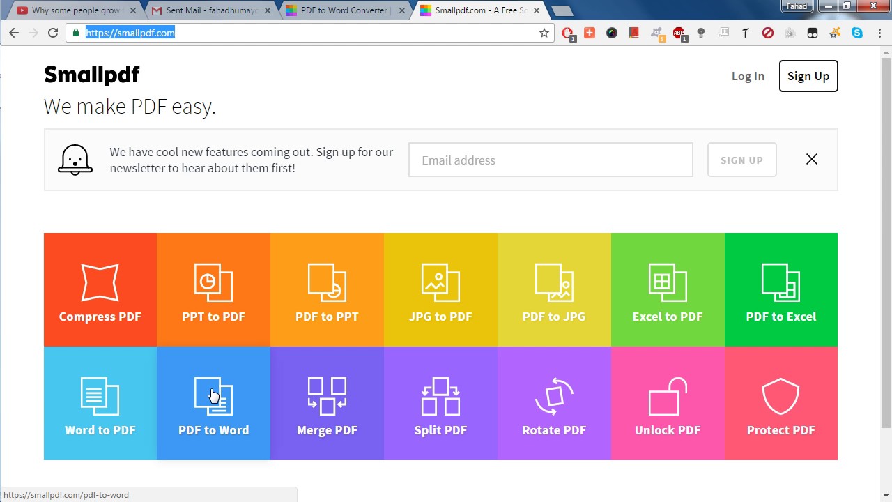 Chúng bao gồm các công cụ để chuyển đổi tệp PDF sang Word, Excel, PowerPoint và JPEG. Bạn cũng có thể chuyển đổi từng loại tệp đó sang PDF. Smallpdf có thể thêm trang vào hoặc nén các tài liệu PDF hiện có.
